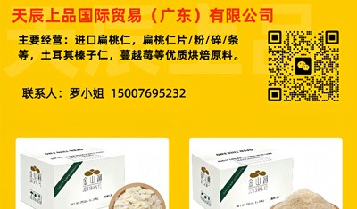 专业经营进口扁桃仁(片、粉、条、碎)、土耳其榛子仁、蔓越莓等优质烘焙原料。联系人:罗小姐 电话:15007695232. [